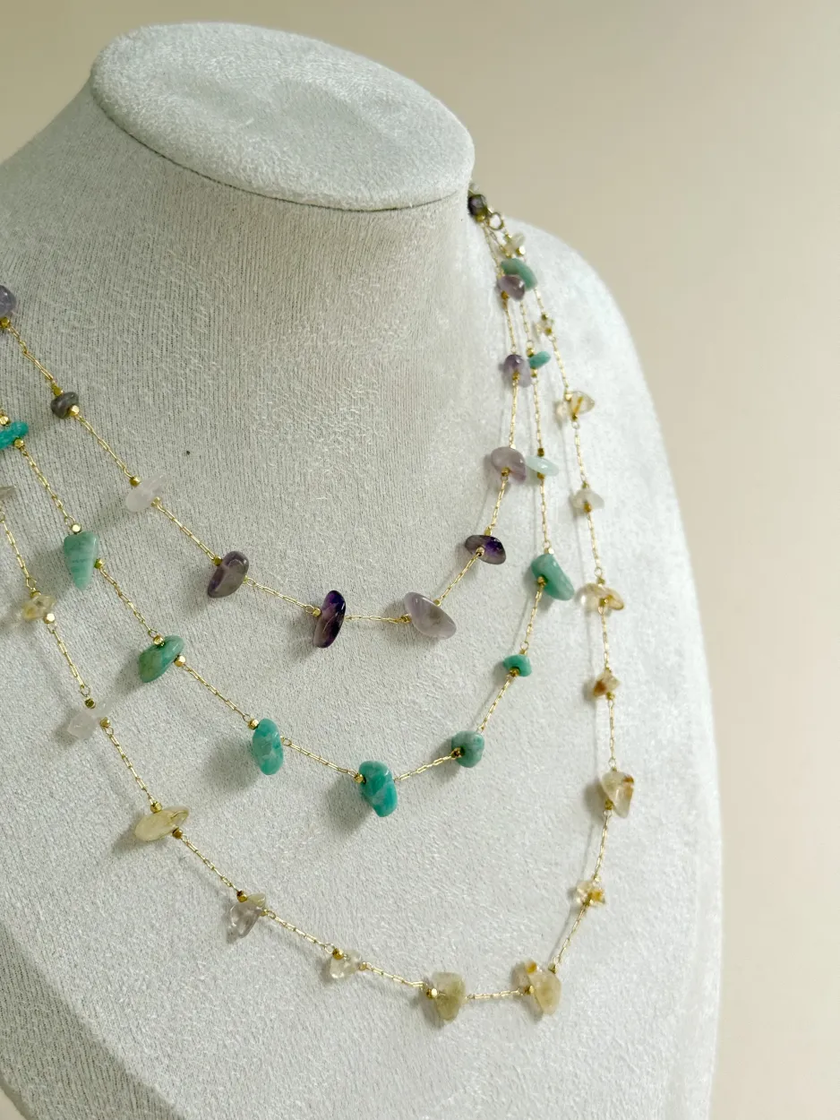 Collar de 50 cm. Se puede ajustar el tamaño a más corto. Cadena baño de oro con piedra natural