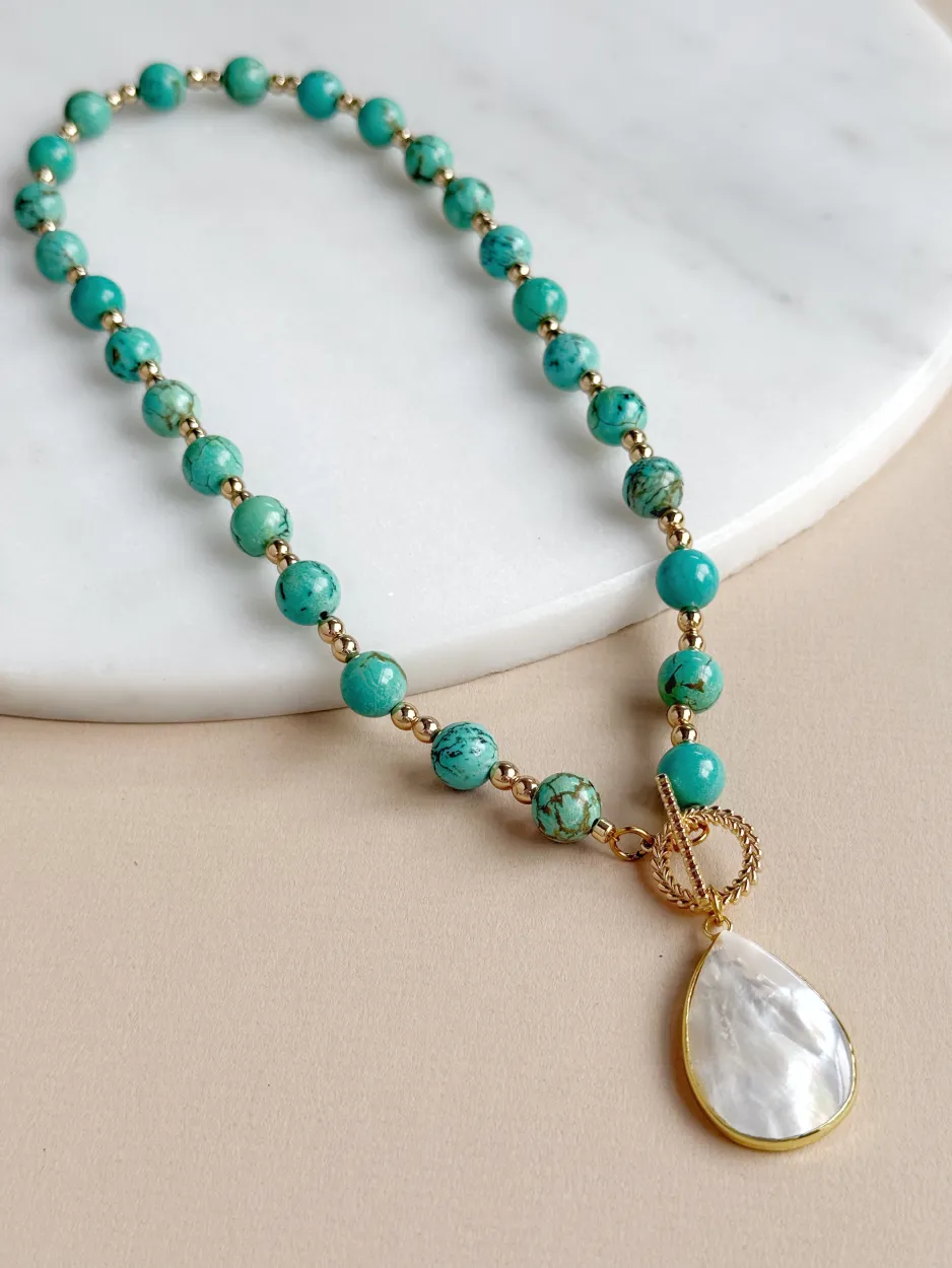 Collar 50 cm de turquesa, cierre marinero y dije de gota de perla de nácar
