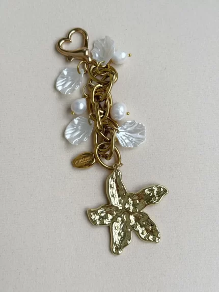 Llavero de 13 cm elaborado con eslabón de acero, con perla de nácar facetada, perla cultivada y ágatas, maxi dije de arbol de la vida de acero. El llavero cuenta con 2 partes que al unirse convierten el llavero también en pulsera.