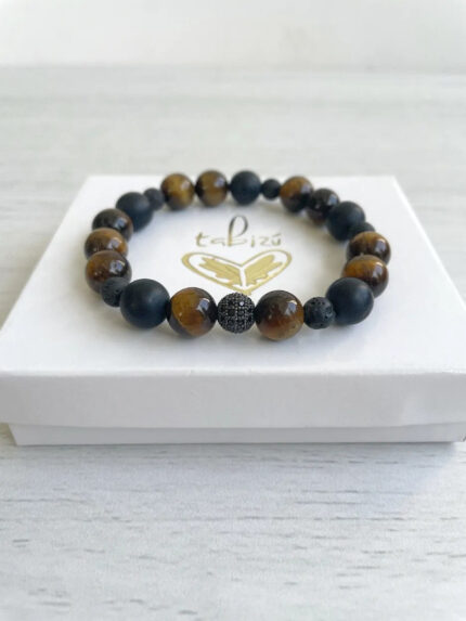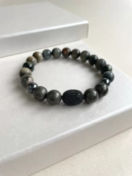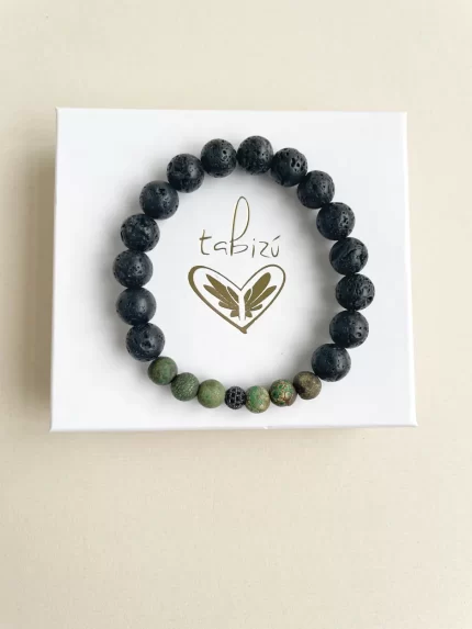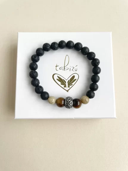 Pulsera piedra volcánica y ágatas gris